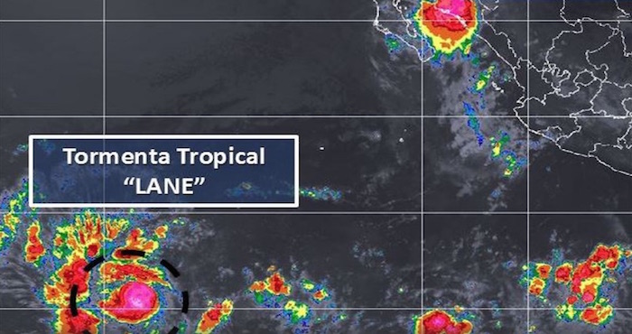 Ciudad de México, 15 de agosto (SinEmbargo).- El Servicio Meteorológico Nacional informó sobre la formación de la tormenta tropical "Lane", localizada a mil 900 kilómetros al suroeste de Cabo San Lucas, Baja California Sur, y presenta vientos máximos sostenidos de 65 kilómetros por hora.