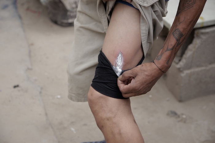 "Yo me tiro (me inyecto) en la ingle porque ya no tengo venas. Son años consumiendo y ya se me acabaron", explica a Efe Adán, de 39 años.