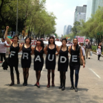Los contingentes caminaron luego por la Avenida Juárez, con dirección al Zócalo, y en su camino bloquearon momentáneamente el Eje Central Lázaro Cárdenas, para continuar por las calles de Madero y 5 de Mayo.