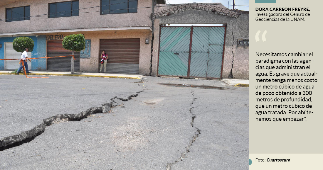 Lo que pasa en México es que se extrae agua subterránea de manera excesiva, y cada vez de zonas más profundas, la principal consecuencia es la subsidencia.