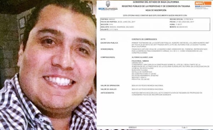 Según documentos en posesión de Zeta, en la escritura pública número 100749 del volumen 4997, Álvarez Juan se convirtió en comprador el 24 de mayo de 2017 ante la fe del Notario Público 8 de Tijuana, Ricardo del Monte Núñez.