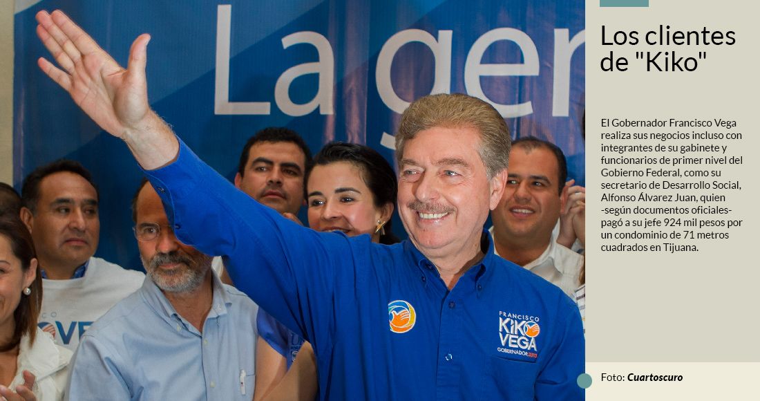 “Kiko” realiza sus negocios incluso con integrantes de su gabinete y funcionarios de primer nivel del Gobierno Federal, como su secretario de Desarrollo Social, Alfonso Álvarez Juan, quien -según documentos oficiales- pagó a su jefe 924 mil pesos por un condominio de 71 metros cuadrados en Tijuana.