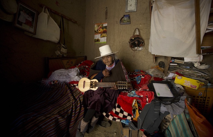 “Si sabía que vendrían me hubiera acordado de las canciones”, dice la anciana mientras rasga el charango que le regaló el alcalde de la ciudad.