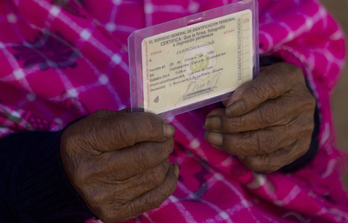 Colque tiene una cédula de identidad reconocida por el Estado que avala su edad, pero el registro civil recién comenzó a modernizarse en los 90 y aun hoy es manual en gran parte del país. Antes de 1940, cuando el Estado asumió el control, los nacimientos eran registrados por los curas en el momento del bautismo. El Estado aún sanea esos registros antiguos.