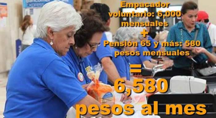 De acuerdo con el Instituto Nacional del Emprendedor (Inadem), los adultos mayores que entran al esquema de empacadores voluntarios llegan a obtener por propinas entre 300 y 600 pesos diarios por jornadas de cinco horas, con sus respectivos descansos, dependiendo de la zona y entidad.
