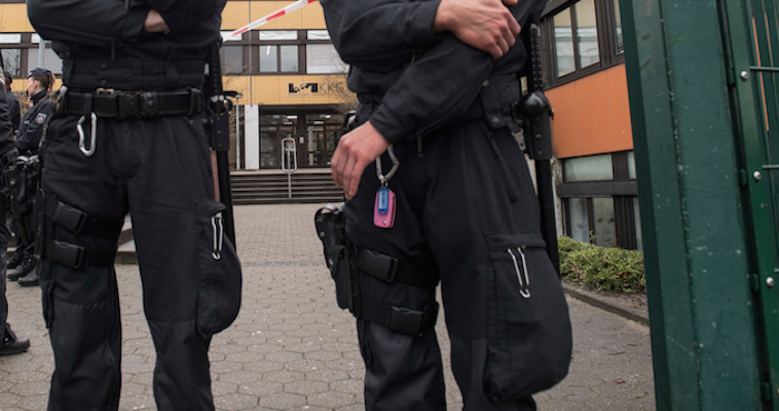 El personal de la escuela consiguió reducir al muchacho y retenerlo contra la pared.