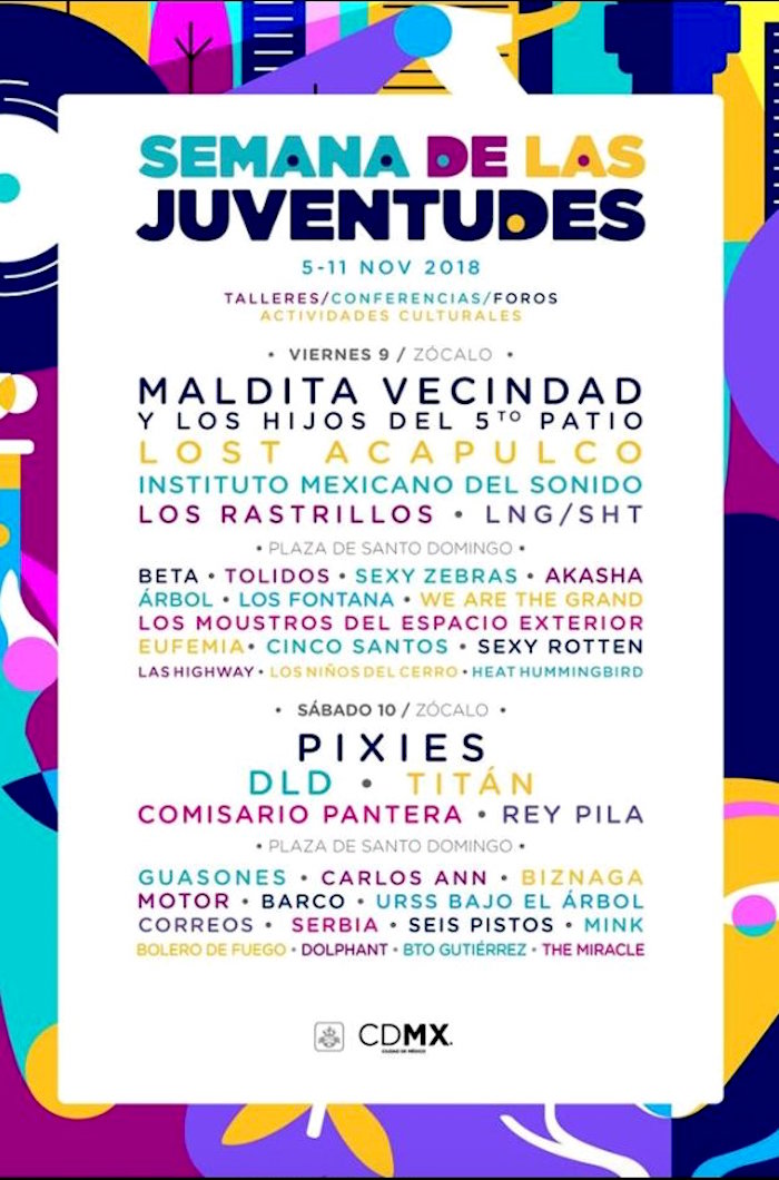 Grandes bandas como los Pixies, la Maldita Vecindad y Los Hijos del 5to Patio, Lost Acapulco, Instituto Mexicano del Sonido, DLD, Titán, entre otros, se presentarán en la "La Semana de las Juventudes".