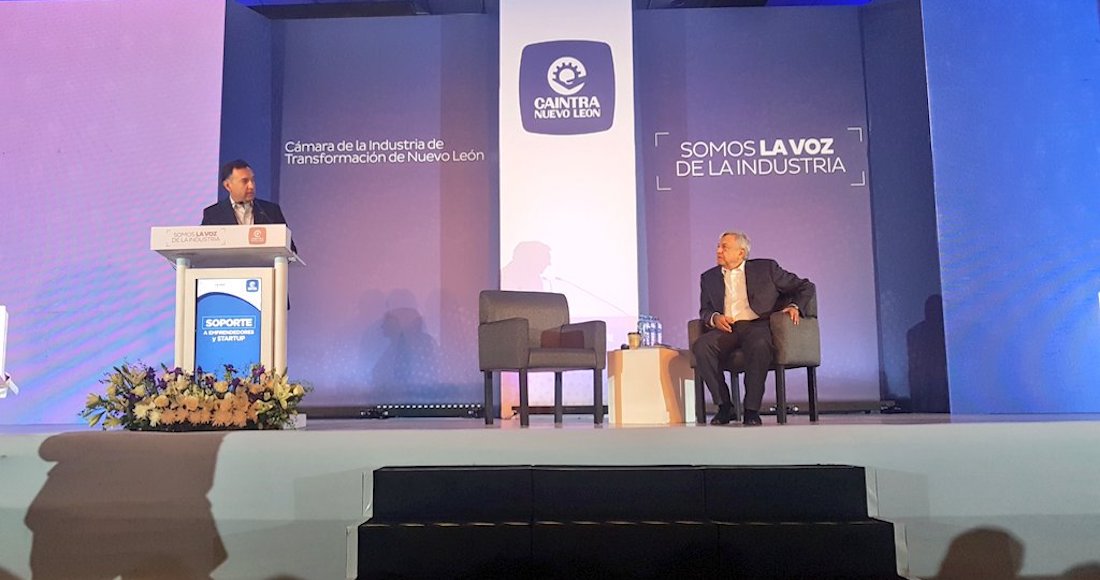 El Presidente electo, Andrés Manuel López Obrador, se reunió este martes con empresarios de la Cámara de la Industria de Transformación (Caintra) de Nuevo León, donde les informó sobre las cinco tareas principales para reactivar la economía del país, entre ellas, adelgazar el aparato legislativo, crear bases para licitar las obras públicas y mejorar programas sociales para que lleguen a la población más pobre del país.