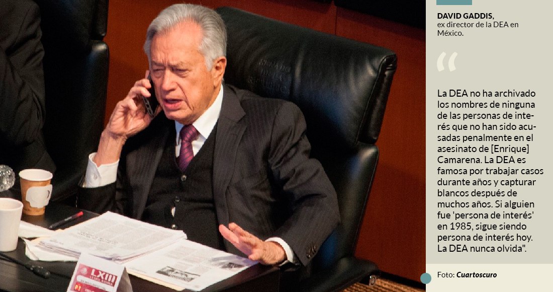 "La DEA no ha archivado los nombres de ninguna de las personas de interés que no han sido acusadas penalmente en el asesinato de Camarena. La DEA es famosa por trabajar casos durante años y capturar blancos después de muchos años. Si alguien fue 'persona de interés' en 1985, sigue siendo persona de interés hoy. La DEA nunca olvida", dijo el también ex subdirector de Operaciones Internacionales de la DEA hasta su jubilación en 2009.