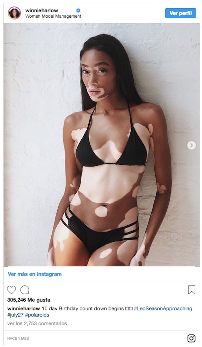 La modelo canadiense de 24 años debutó en 2014 en America's Next Top Model. Pese a sufrir burlas en la escuela debido a su aspecto, Winnie Harlow nunca renunció a su sueño.