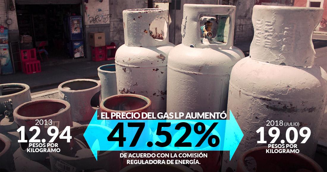 El precio del gas LP ha pasado de 12.94 pesos el kilogramo en 2013 a 19.09 pesos a julio de 2018, de acuerdo con la Comisión Reguladora de Energía (CRE).