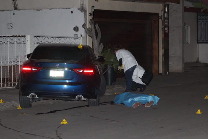 Los dos extranjeros llegaron en un vehículo de color azul metálico de modelo reciente y apenas se bajaron de la unidad, fueron atacados a balazos por sujetos que ya los esperaban en el domicilio.