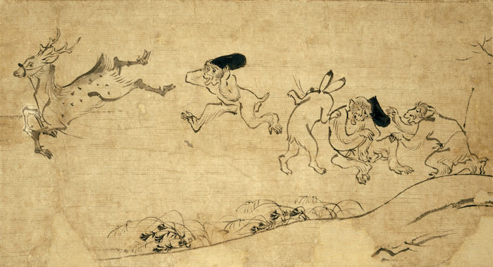 En el budismo y el sintoísmo, cada criatura tenía su propio lugar en el templo dependiendo de su poder divino. Por ejemplo, los ciervos eran mensajeros o actuaban como suplentes de los dioses, idea que aparece en un pergamino del siglo VI d.C., en el que un ciervo usa una nube para subir a la luna, donde se reflejan los dioses.