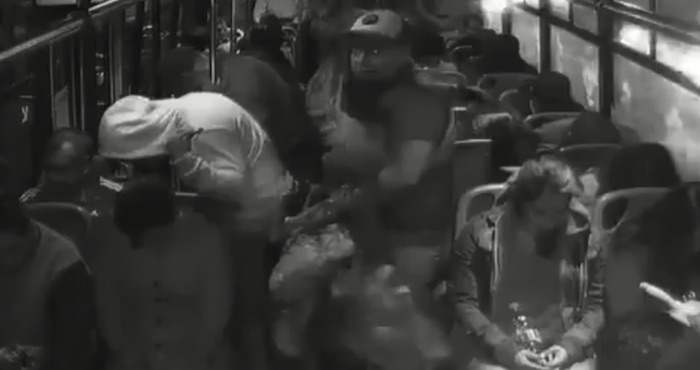 Todos los pasajeros agachan la cabeza, mientras los presuntos asaltantes les quitan sus pertenencias, e incluso golpean a quienes intenten alzar la vista, según lo que se observa en este video.