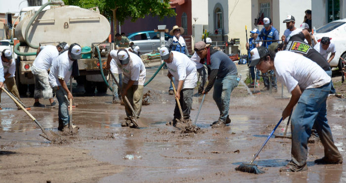 Hasta ahora se contabilizan cinco muertos a causa del fenómeno. Ante la contingencia que se vive en el centro y el norte del estado, de diferentes partes de la República y de la misma sociedad sinaloense se han recibido 212 toneladas de víveres y 70 mil litros de agua.