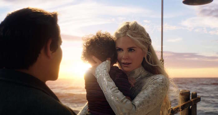 2. El filme arranca con el momento en que se conocen los padres de Aquaman. Ella es la reina de Atlantis (intepretada por Nicole Kidman), a la que encuentra un farero entre las rocas en un día de tormenta, malherida y con un tridente en su mano.