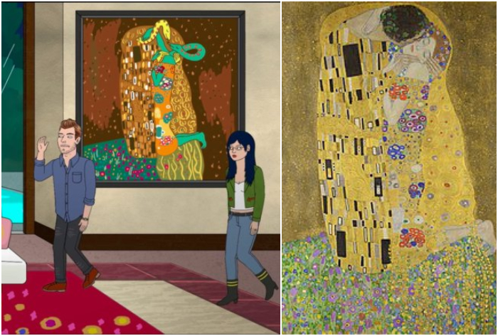 El beso de Klimt, por otra parte, aparece en un capítulo donde Diane intenta recuperar su intimidad con Mr. Peanutbutter.