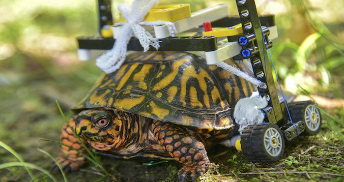 Tortuga con caparazón roto camina en silla de ruedas de Lego mientras se recupera de cirugía en EU