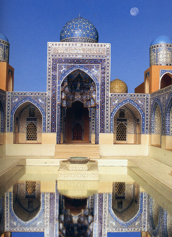 Para el no iniciado en la arquitectura islámica, el capítulo “El Islam: construcción del Paraíso” servirá de referencia para comprender los elementos que conforman las edificaciones islámicas: las diferencias entre la perspectiva occidental y la árabe; los arcos o iwanes; los arabescos y sus distintas categorías, así como otros motivos decorativos, como la caligrafía árabe, los temas del zodíaco y la cosmogonía mesopotámica o persa, las cúpulas, etcétera. Llama la atención la ausencia de un plan coherente o de un prototipo en los palacios islámicos, lo cual incrementa el misterio que rodea a estas estructuras y que, posiblemente, alimento el mito occidental de increíbles laberintos persas plagados de trampas. Aunque, en realidad, cada recinto tenía una función bien determinada. Estas especulaciones son invocadas en los versos de Ibn Zamrak: “Torre fuerte que contiene un palacio, te preguntarás si es una fortaleza o una morada de recreo”.