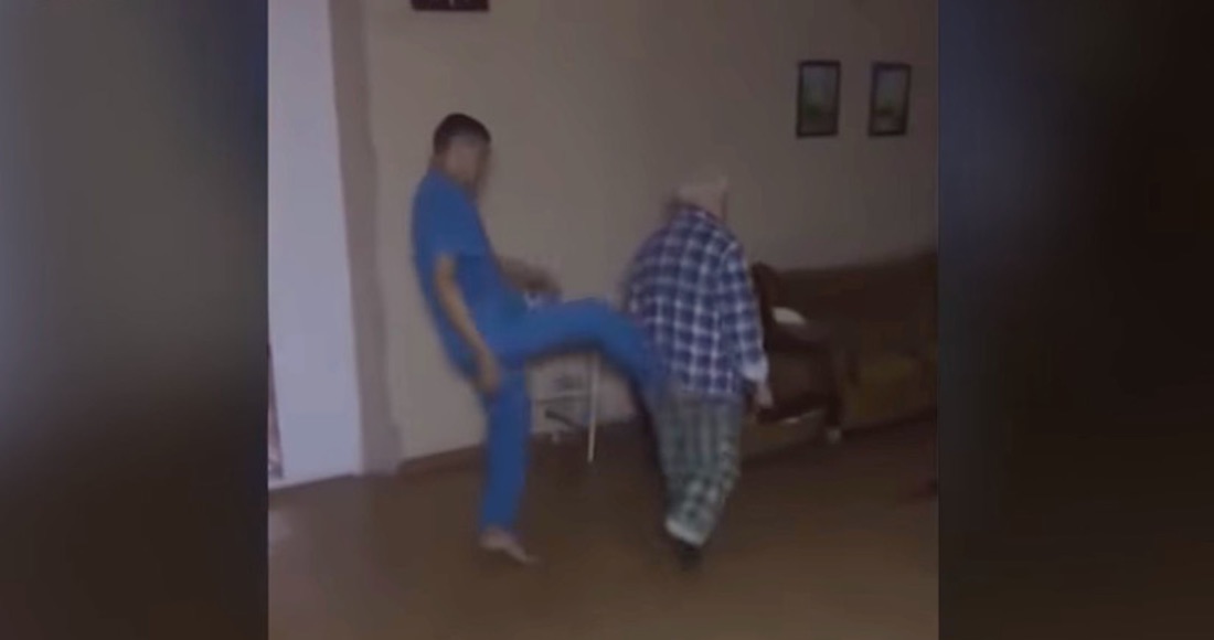 En la grabación, difundida este lunes, fue realizada el pasado 29 de junio, se observa cómo uno de los enfermeros le arroja dos zapatillas a la víctima, que estaba sentada en un sofá, por lo que esta se levanta y se dirige hacia su agresor, que se burla de ella junto con su compañero. Acto seguido, cuando le da la espalda, el hombre le propina una fuerte patada en el trasero, a lo que su compañero responde con risas, sin hacer nada para proteger al anciano.