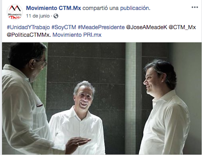La CTM mantiene activas las cuentas oficiales del Movimiento CTM.mx que durante las campañas electorales manifestaron abierto apoyo al candidato priista José Antonio Meade Kuribreña. Muy distante de las luchas sindicales de los trabajadores de México, el apoyo que la CTM concede al PRI es directo, pero con una influencia casi nula entre los trabajadores desinteresados en las cientos de publicaciones que difunden casi a diario, y que en fechas recientes permanecen sin ninguna reacción. A pesar de que los cetemistas recibieron capacitación de miembros del Movimiento PRI.MX, de acuerdo a las fotografías exhibidas en la cuenta oficial del Movimiento CTM.mx, esta es una red fantasma, que genera nula influencia tanto en lo político como en lo laboral. Su existencia en los foros digitales es solo simbólica para los trabajadores, y para apoyar a campañas y líderes priistas.