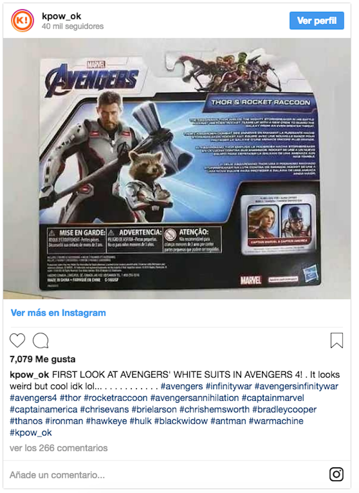 La pista en cuestión, o mejor dicho advertencia a navegantes, procede de un caja que alberga los muñecos de Rocket y Thor, quien luce una moderna e inédita armadura. "El asgardiano Thor maneja el poderoso Storm Breaker en su batalla contra nuevos enemigos", indica la descripción. Y aquí hay que recalcar "nuevos enemigos", ya que implica que en la película de los hermanos Russo los Vengadores supervientes deberán enfrentarse no solo al Titán, sino también a nuevos adversarios.