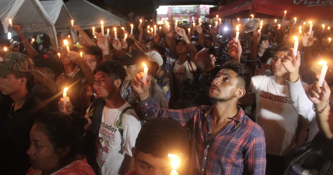Durante la noche, los migrantes encendieron cirios en forma de cruz en un altar sencillo para el hondureño que falleció luego de que cayó de una camioneta repleta de gente el lunes mientras viajaba por una carretera.