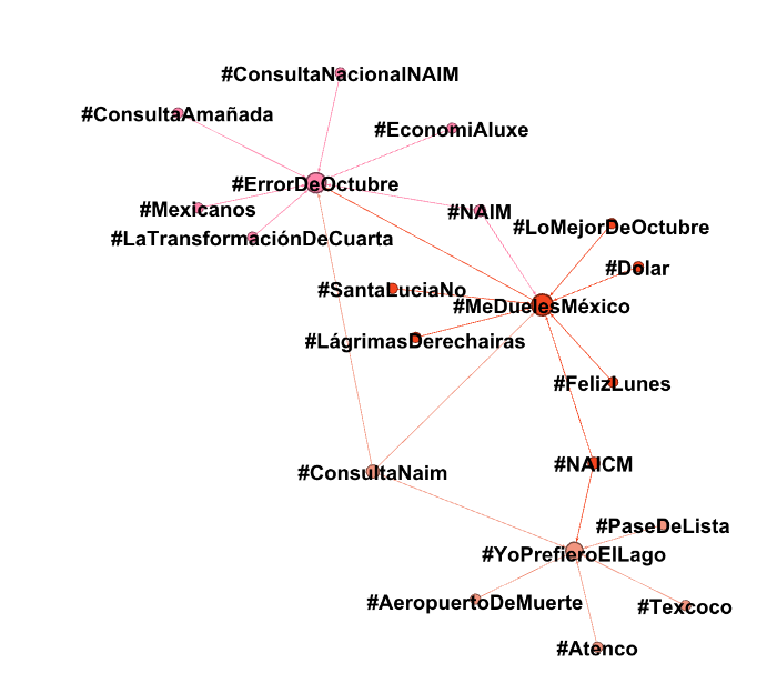 #MetaDatos | Grupos antagónicos al Presidente electo, Andrés Manuel López Obrador, generan durante horas y horas la tendencia #MeDuelesMéxico y #ErrorDeOctubre a través de la red. Impulsan la idea de una debacle económica por la cancelación del NAIM.