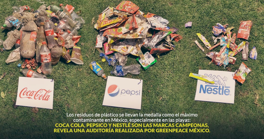 Los residuos de plástico se llevan la medalla como el máximo contaminante en México, especialmente en las playas: Coca Cola, Pepsico y Nestlé son las marcas campeonas, revela una auditoría realizada por Greenpeace México.
