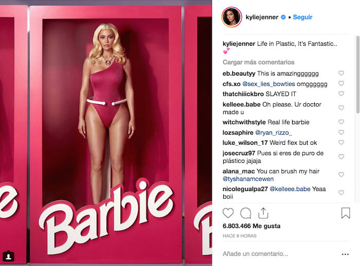 En el siguiente post Kylie hace alusión a la famosa canción del grupo Aqua, con su tema “Barbie Girl”, al igual que en su primera publicación en donde comparte algunas partes de dicha canción como: “Life in Plastic, It’s Fantastic” y “Come On Barbie, Let’s Go Party”.