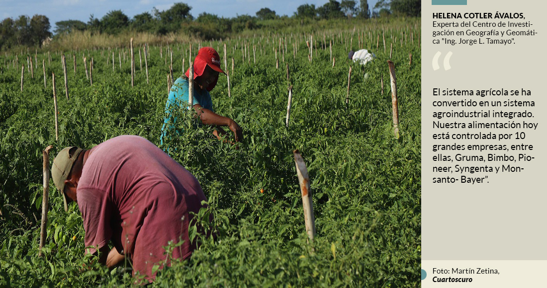 A pesar de las cifras, el sistema agrícola mexicano "se ha convertido en un sistema agroindustrial integrado”, dijo en abril a SinEmbargo, la doctora Helena Cotler Ávalos. Para la especialista en Ciencias Agronómicas, esto significa que “nuestra alimentación hoy está controlada por 10 grandes empresas”, entre ellas, Gruma, Bimbo, Pioneer, Syngenta y Monsanto-Bayer.