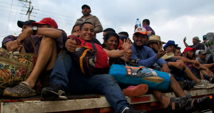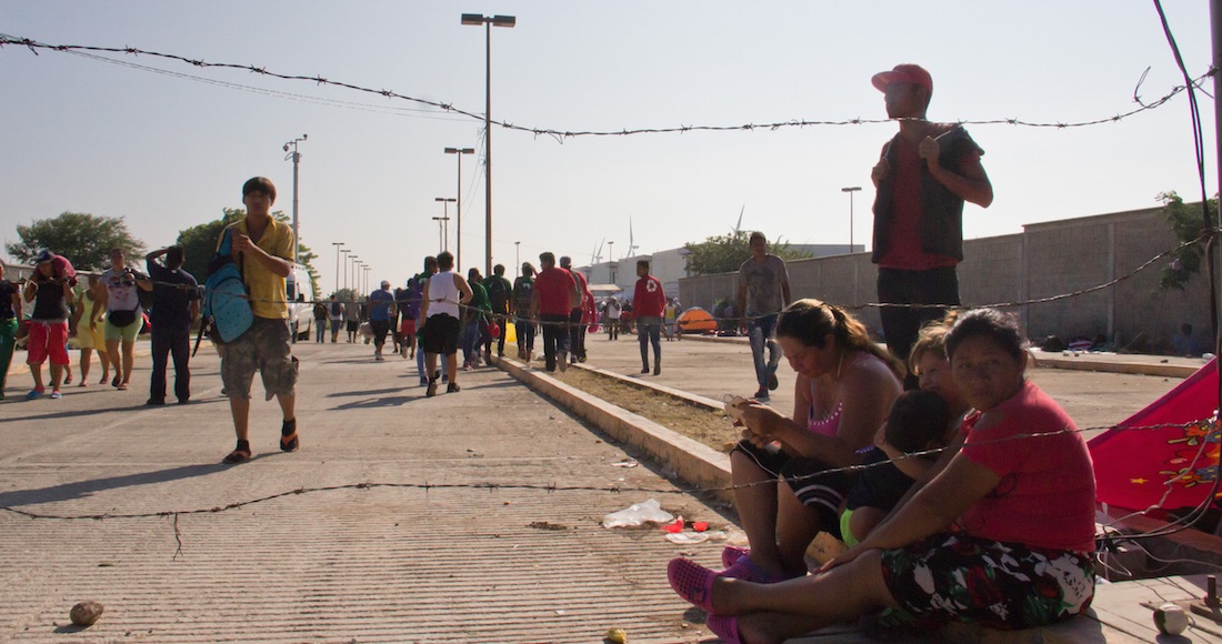A las 07:00, tras cuatro horas andando, llegaron a un control migratorio mexicano y se pararon a descansar. Los termómetros ya superaban los 26 grados Celsius (80 Fahrenheit). Cientos de migrantes hacían fila para recibir bolsas de agua y sándwiches que entregaban los residentes que querían ayudar.