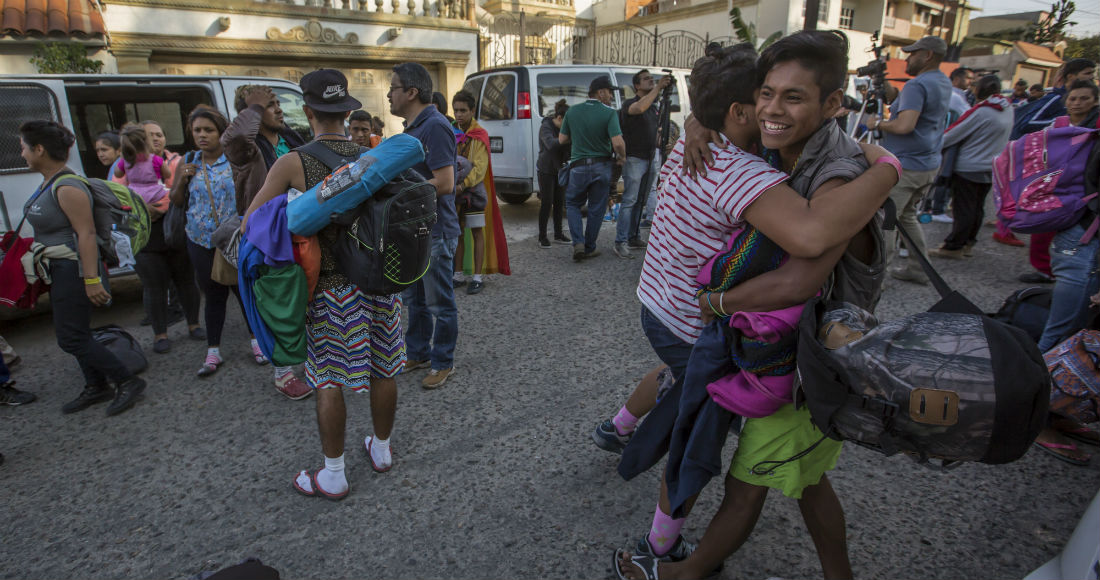 La hondureña Karen Martínez, de 29 años y oriunda de Santa Rosa de Copán, fue una de las primeras en salir del albergue de Irapuato con su hermana y sus tres hijos de 6, 11 y 13 años. “Ahí venimos, a ratos llorando, a ratos riendo, pero ahí vamos adelante”, dijo.