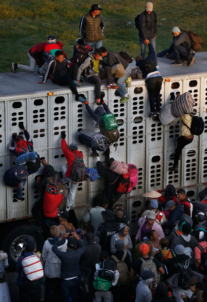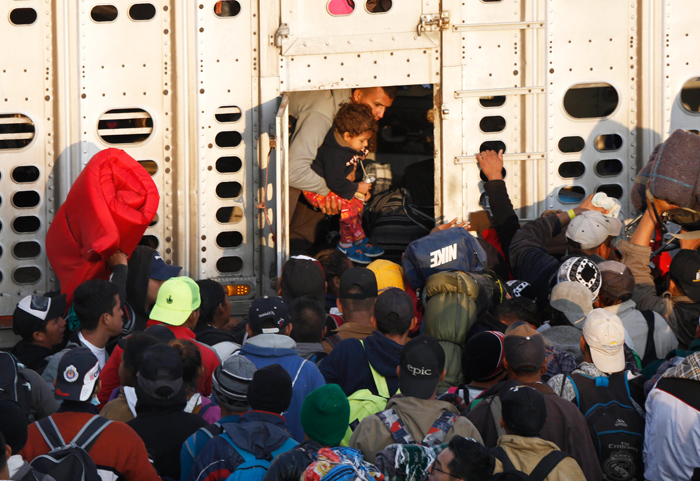 Las autoridades mexicanas han ayudado a los migrantes a conseguir transporte y aunque la policía les impidió el domingo que hicieran dedo, sí los ayudó a conseguir camiones que los trasladaran.