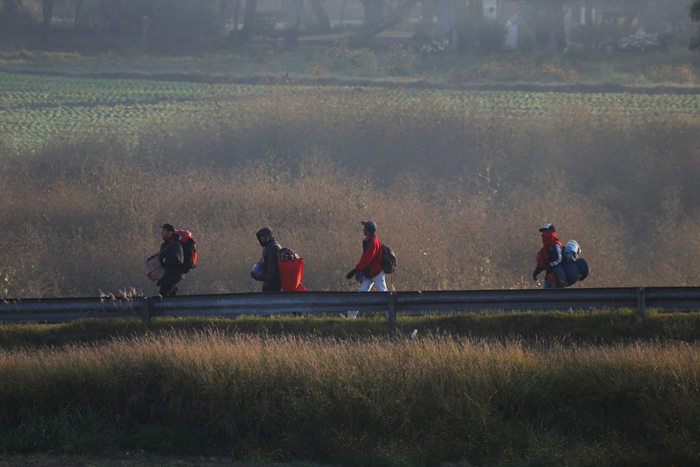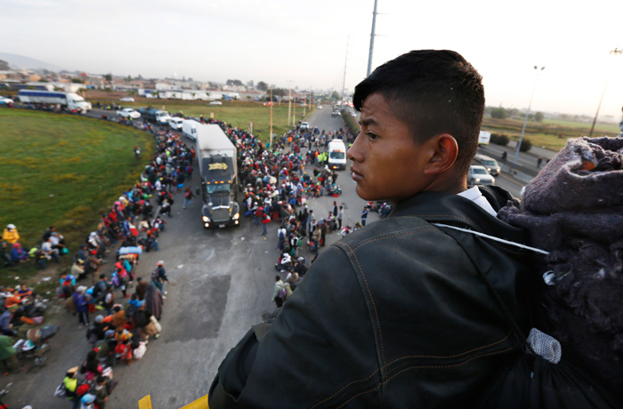 Mientras a comienzos de octubre, cuando arrancó la caravana, los migrantes sufrían el calor del sur de México, ahora viajaban envueltos en mantas para protegerse del frío de la mañana.