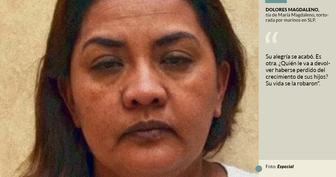 San Luis Potosí, 15 de noviembre (Pulso/SinEmbargo).- “Su alegría se acabó. Es otra. ¿Quién le va a devolver haberse perdido del crecimiento de sus hijos? Su vida se la robaron”, reclamó María Dolores Magdaleno Tobías, tía de María Magdalena Saavedra Magdaleno, potosina abusada sexualmente y torturada por marinos y policías federales en 2013.
