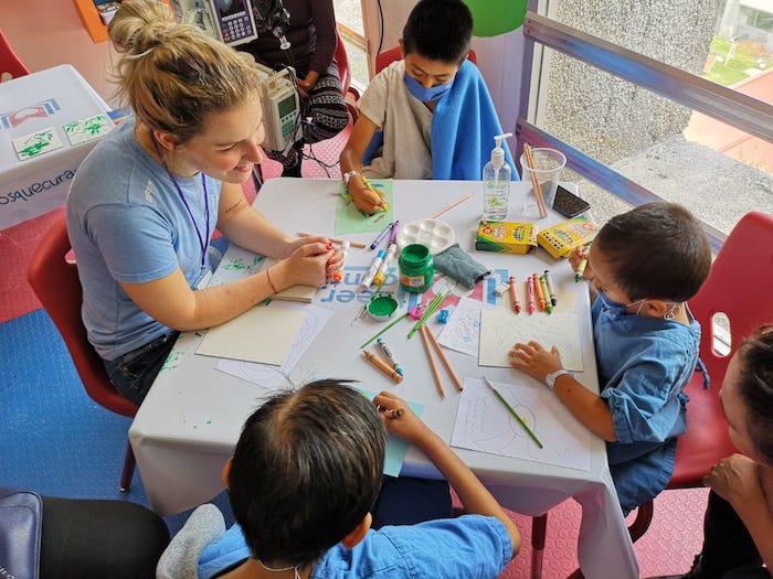 "Visitando los hospitales nos dimos cuenta que muchas veces los niños abandonan su tratamiento médico porque es muy largo y es muy cansado tanto física como emocionalmente entonces es por eso que nosotros tratamos de darles un programa multidisciplinario que abarque distintas áreas para que los niños se sientan motivados y cuenten con los recursos tanto psicológicos como económicos para tener un tratamiento médico exitoso".