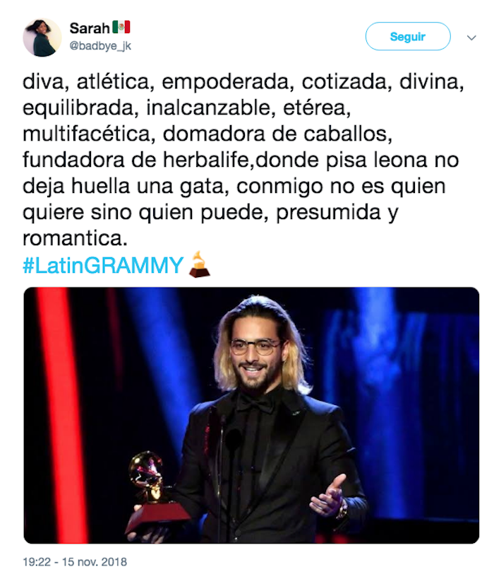 Maluma ganando un Grammy por "Pop" y bueno, hoy todos somos Natalia Lafourcade... pic.twitter.com/zSF8H2C2Jp