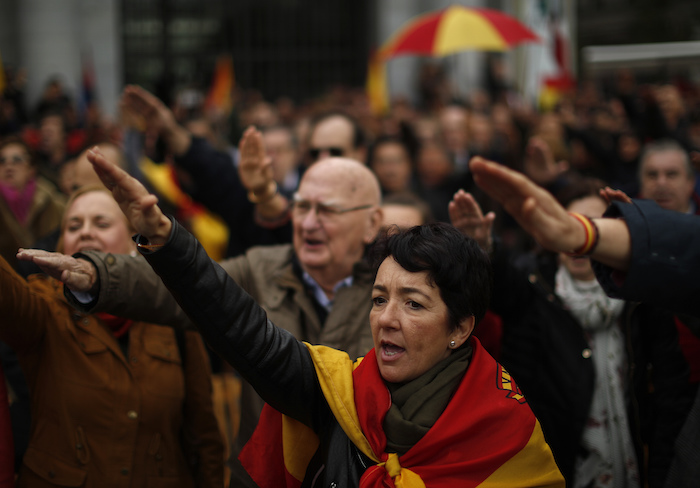 La policía se llevó a las tres activistas mientras los franquistas gritaban insultos y coreaban “Franco, Franco, Franco”.