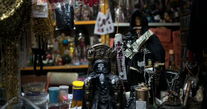 Desde entonces esa imagen —bastante parecida a la que usan en las películas y caricaturas para representar a la muerte— se ha expandido por todo el país. Aunque tiene un lado oscuro: se cree que la mayoría de la gente que la adora son delincuentes y gente de barrios populares que le piden favores para protegerlos en sus actividades ilícitas.