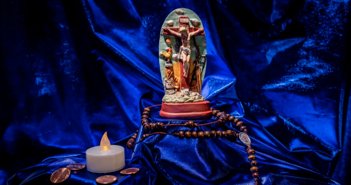 Algo que sí se puede afirmar con seguridad es que tanto la religión como el crimen, son frecuencias comunes a través de las cuales resuena el continente. Y aunque muchos de estos santos y figuras no son exclusivos de los criminales de nuestro continente, y le cumplen otros milagritos al resto de habitantes de Latinoamérica, sí son figuras de devoción para la ilegalidad. Es por esto que quisimos plasmar la relación que muchos criminales tienen con sus figuras de culto en esta galería, donde se evidencia nuestra cultura criminal en su mejor expresión, si es que podemos decir eso: catolicismo, superstición, tradición, historia, brujería y sangre, todo en uno.