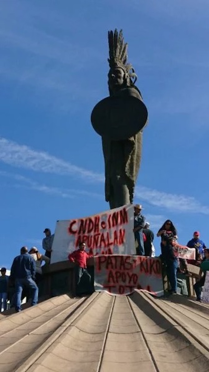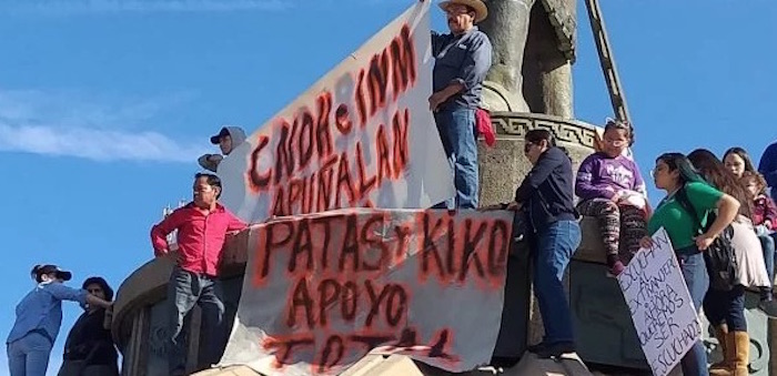 La manifestación, convocada en redes sociales, tenía como hora de inicio las diez de la mañana, sin embargo, ante la escasez de inconformes comenzó a las 11:00 horas, luego de que el reducido grupo subió a la rotonda y mostró pancartas en las que se leía: “Patas y Kiko, apoyo total”, “CNDH e INM apuñalan a Tijuana”, “Retorno asistido”, y “Escuchan al extranjero, ahora queremos ser escuchados”.