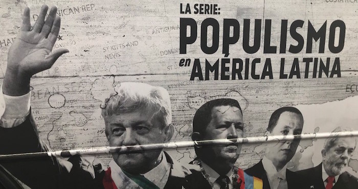 Previo a las elecciones de este año, unidades de transporte público con publicidad de la serie Populismo en América Latina circularon por la Ciudad de México. En la imagen de los camiones se paseaba a Andrés Manuel López obrador, al lado de los ex presidentes Hugo Chávez (Venezuela), Juan Domingo Perón (Argentina) y Luiz Inácio Lula da Silva (Brasil).