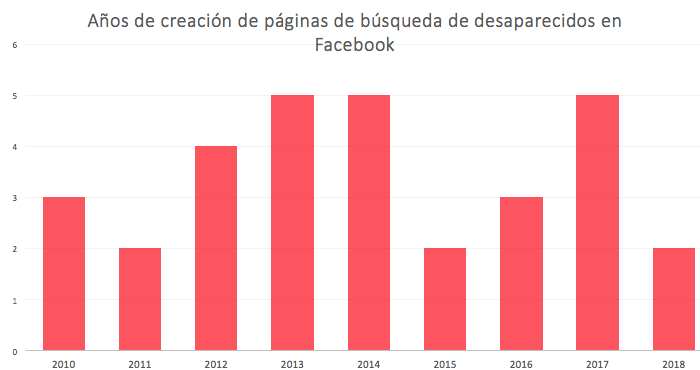 Ríos de información, fotografías, señas particulares, teléfonos de contacto y llamados desesperados de ayuda para encontrar a familiares no localizados se han abierto camino entre la actividad cotidiana de las redes sociales. Entre 2010 y 2018, las páginas dedicadas a víctimas de desaparición forzosa se han multiplicado en esta plataforma. En la actualidad se cuentan por centenas e integran un movimiento surgido en respuesta a la ola de inseguridad y el incremento de las desapariciones que, de acuerdo con el ex Secretario de Gobernación, Alfonso Navarrete Prida, en octubre de este año se estimaban en más 37 mil 487 casos, aunque en realidad la cifra exacta se desconoce.