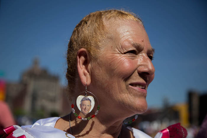 "Aquí no somos acarreados. Vinimos por amor", dijo Alberta de Mixquiahuala, Hidalgo. "18 años tenemos luchando por él hasta que se nos hizo, dígame si no íbamos a estar ahora", agregó luego de evocar su presencia en 2006 "lloviendo y con frío". Hoy es con sol.