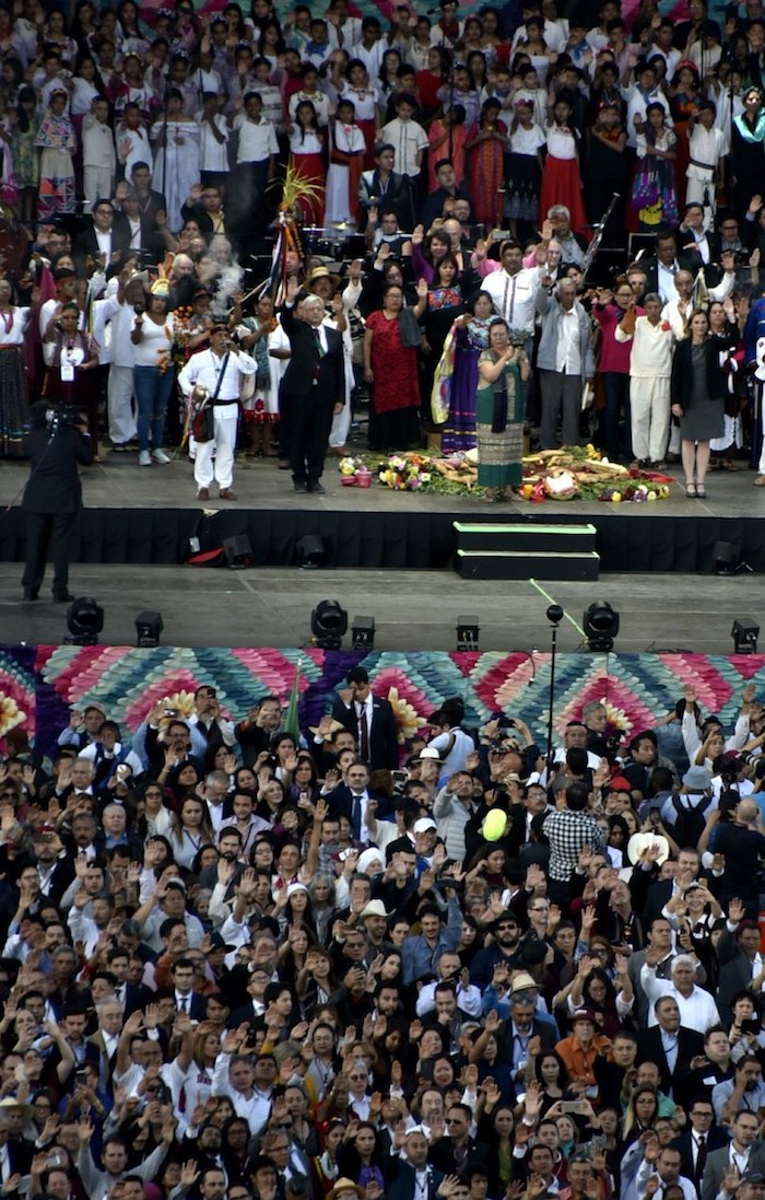 “México vivirá a partir de hoy una transformación. Aquí está el bastón de mando. Aquí está el símbolo con el que conducirá al pueblo. Queremos ser tomados en cuenta en los planes que usted tenga para estos seis años. Esta mañana, este bastón fue consagrado en el centro ceremonial que guarda la sabiduría de nuestros ancestros”, le dijeron.