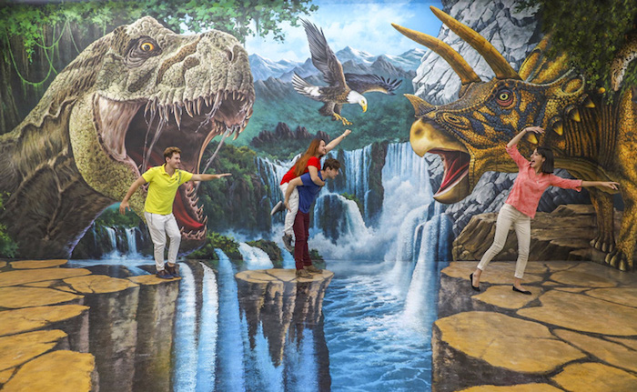 “El arte tridimensional y la realidad aumentada conviven para ofrecer una experiencia única que permite crear ilusiones ópticas sorprendentes en las que incitamos a la gente a tocar las obras y meterse en ellas”, dijo.