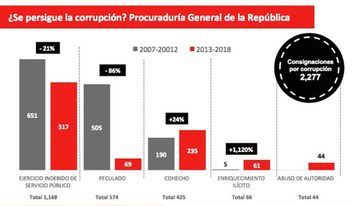 Las consignaciones sobre corrupción de la PGR. Imagen: México Evalúa.