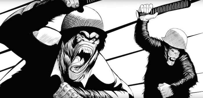 Las figuras políticas y los granaderos son representados como simios. Foto: YouTube