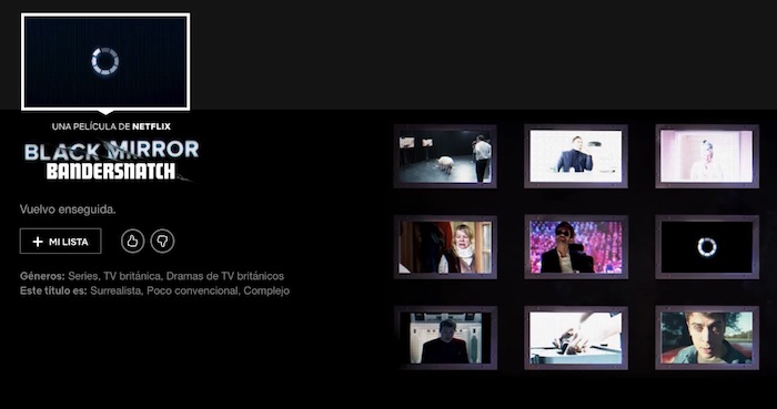 La expectativa creció aún más cuando al buscar la palabra "Bandersnatch" en la aplicación de la plataforma streaming, aparece el listado de los episodios de Black Mirror seguido de la imagen de “carga de pantalla”, acompañado de la frase “vuelvo enseguida” y la leyenda “una película de Netflix”, lo que ha intrigado a los fans de la serie.